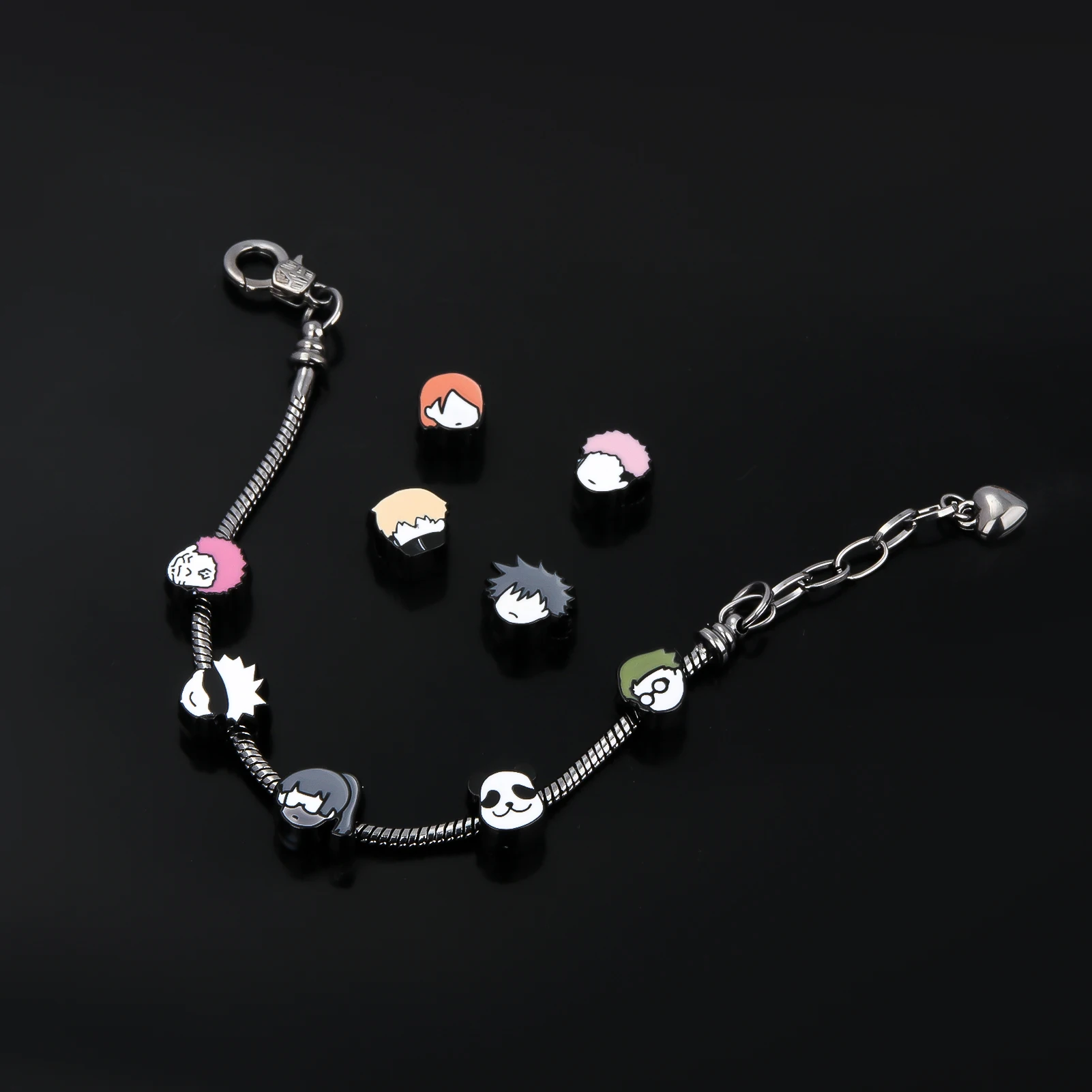 Pulseira DIY inspirada em Jujutsu Kaisen com pendentes destacáveis dos personagens Fushiguro Megumi e Yuji. Confeccionada em liga de zinco com corrente tipo corda e fecho tipo lagosta, oferece versatilidade para customização pessoal. Ideal para fãs do anime que desejam um acessório único para cosplay ou uso diário. Design trendy e unissex que combina estilo cartoon com acabamento metálico sofisticado. Presente perfeito para colecionadores e apaixonados pela série.